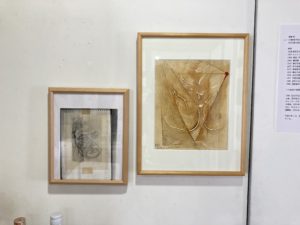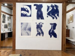 展示には、言葉での参加者を募った約50名の方々の一行詩も加わり、作家が描き溜めたドローイングに重ねて