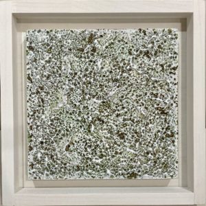 落ちる白い泡、幼少の頃に刻まれた海辺の強い光と水の記憶が、箔などの光る素材や水と油